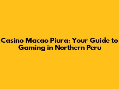 Casino Macao Piura: Your Guide To Gaming In Northern Peru