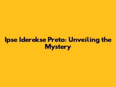 Ipse Iderekse Preto: Unveiling The Mystery