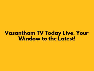 Vasantham TV Today Live: Watch Now!